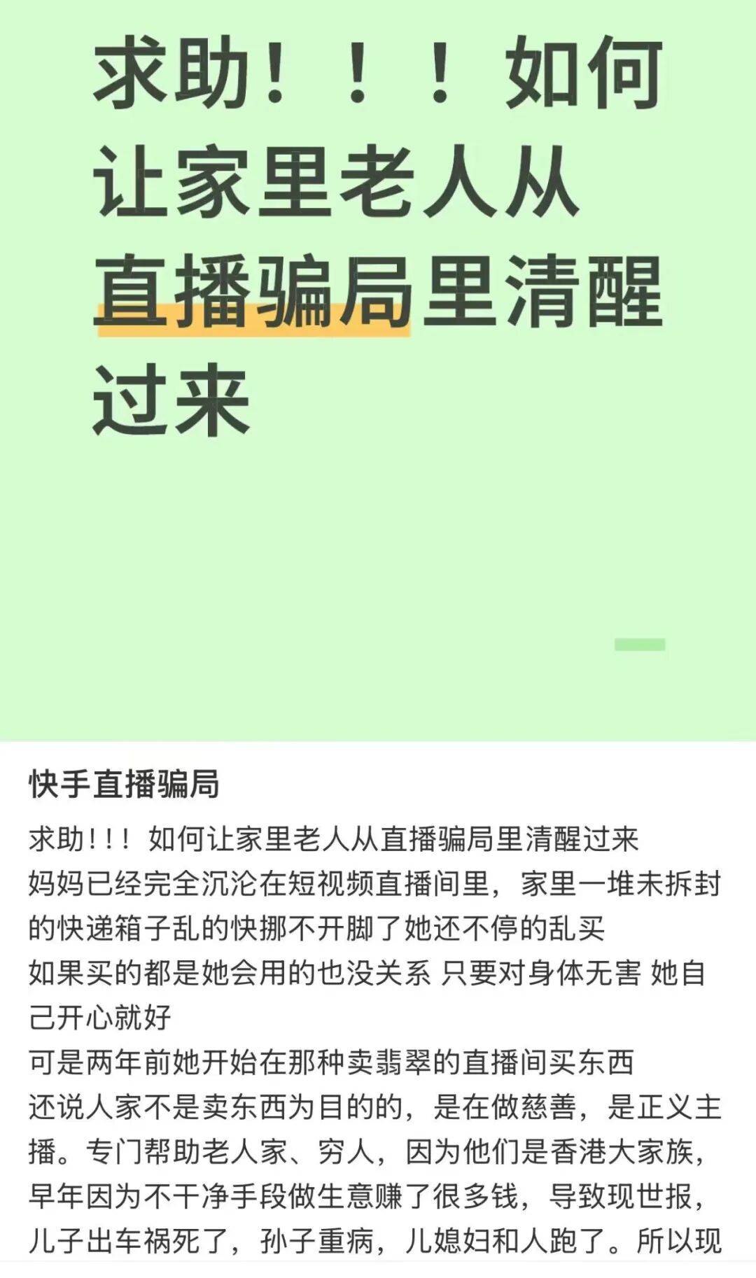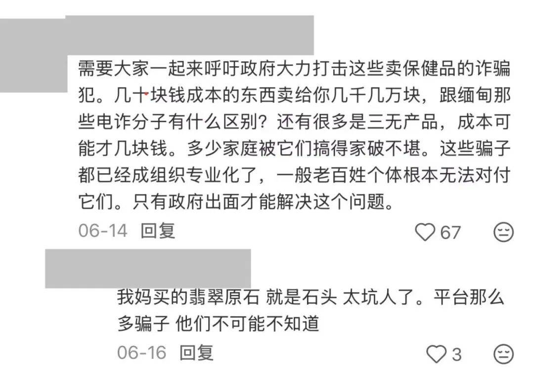 钟玉告诉《中国新闻周刊》,那些主播早就提醒过老人“别告诉子女”。甚至用剧本包装,声称这些藏品“稀缺”,不能告诉外人,以防被坏人抢夺。并以“护宝”为由告诫老人不要退货,“钱可以退还,但中华珍宝会落入外国人手中”。