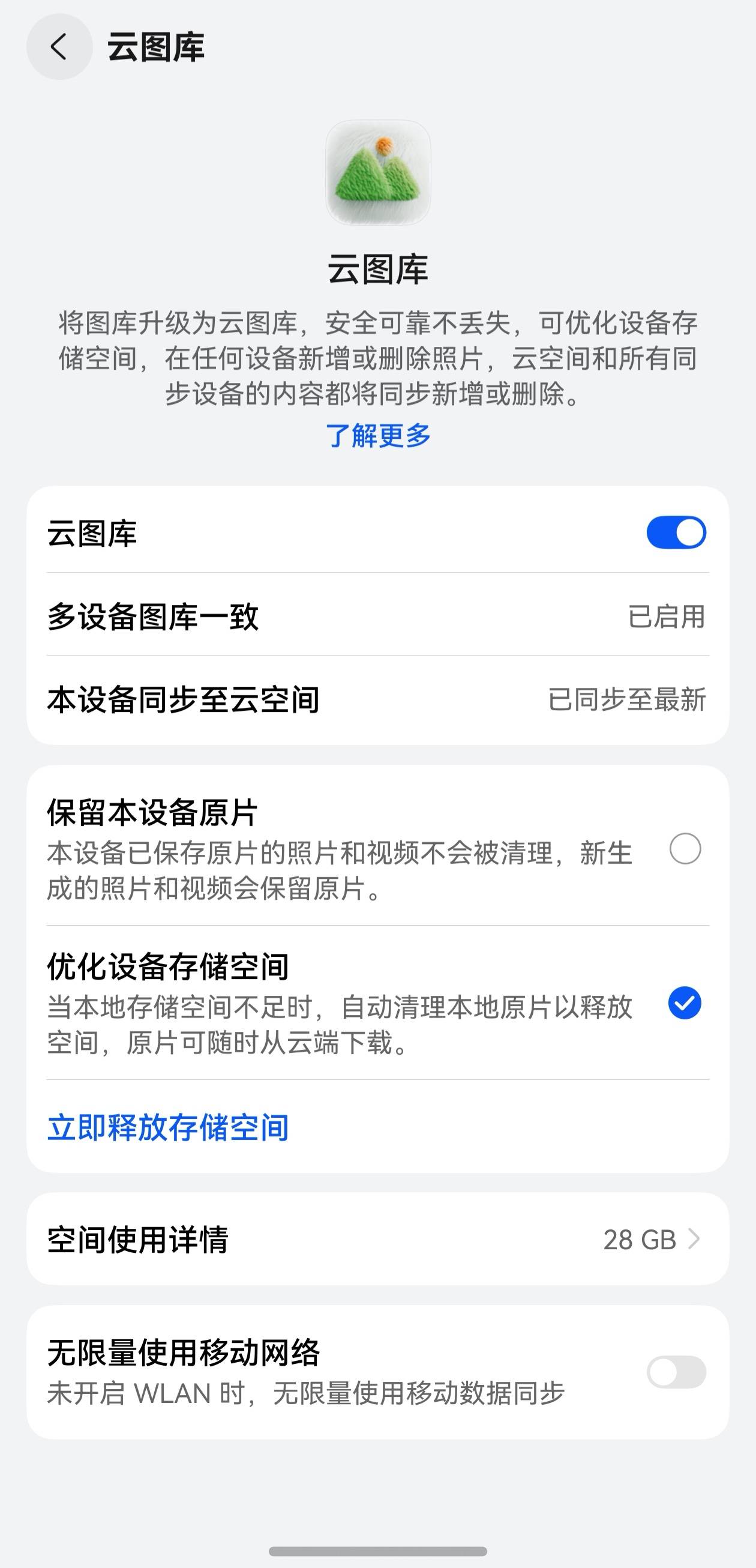 每一次倒数与欢笑,都值得被好好珍藏。可拍多了总担心手机空间不足,导致珍贵瞬间难以留存。出行前在华为云空间中打开“云图库”,并勾选“优化设备存储空间”功能,就算设备不幸丢失或者损坏,珍贵影像都能在云端安全保存。手机空间紧张时,系统还会智能地把本地不常用的照片/视频替换成小体积预览版,默默腾出空间,让你放心拍到尽兴。
