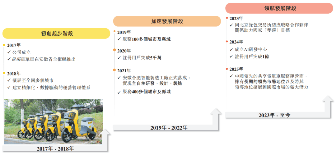 于往绩记录期间,松果的运营和财务表现稳健。已投放松果电单车数量由截至2023年12月31日的389,899辆增加至截至2024年12月31日的416,382辆,并进一步增加至截至2025年9月30日的454,627辆。