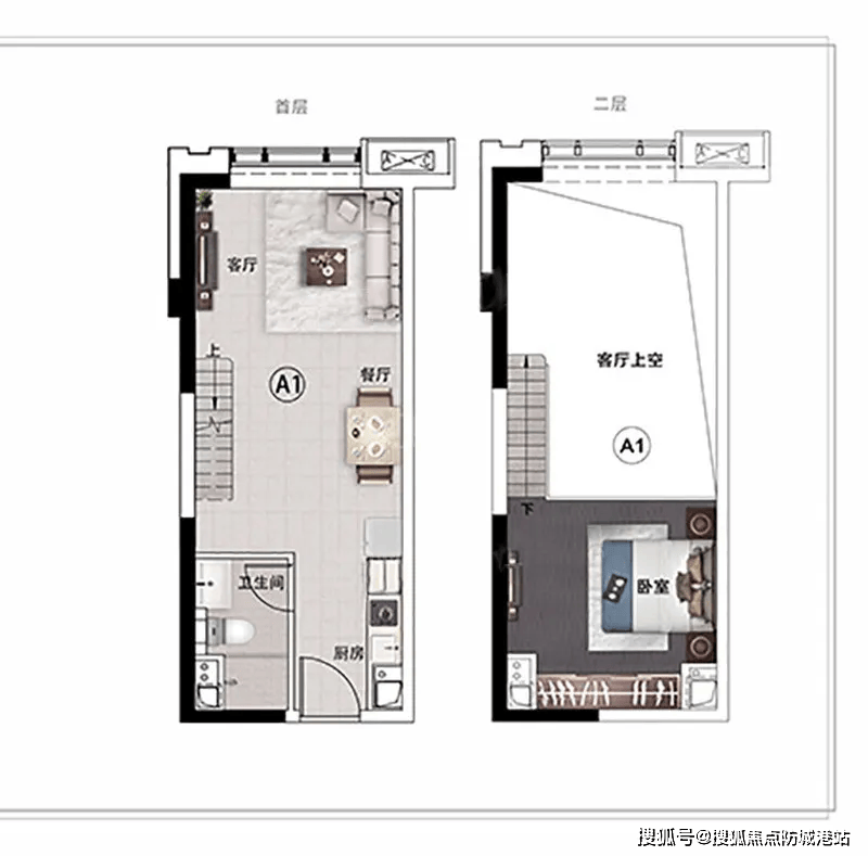 :层高4.5米,可灵活隔为上下两层,楼下会客烹饪,楼上私密休憩,空间利用率极高,深受年轻群体喜爱。