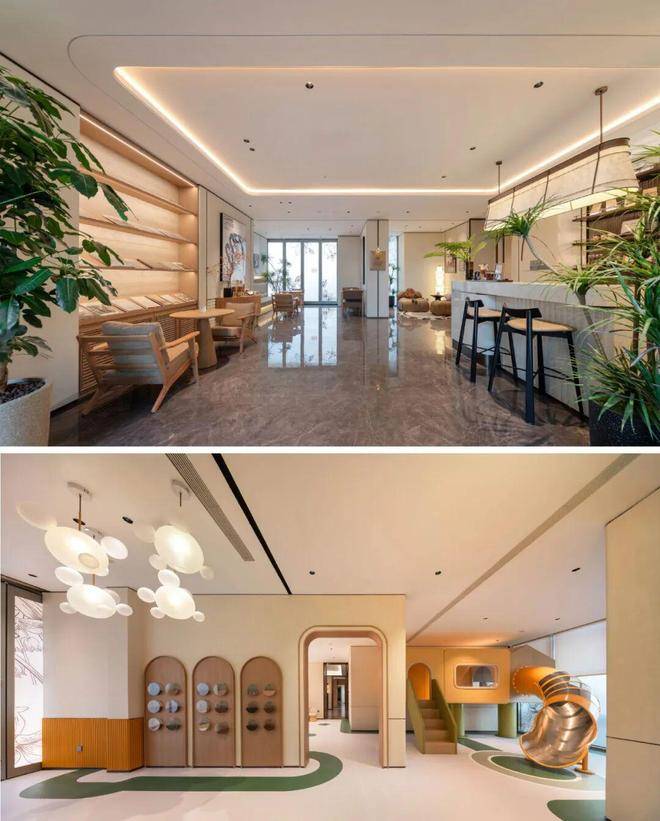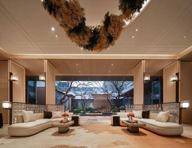 整个会所巧妙利用建筑高差营造立体多维的景观层次,打破沉闷压抑感,使下沉式会所与庭院景观自然衔接,实现社交空间与生态场景的无界融合。