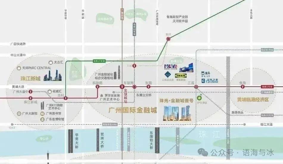 珠光·金融城壹号落子广州国际金融城东部门户要塞,西临珠江新城,北接天河智慧城,南为琶洲商圈,东接黄埔临港经济圈。