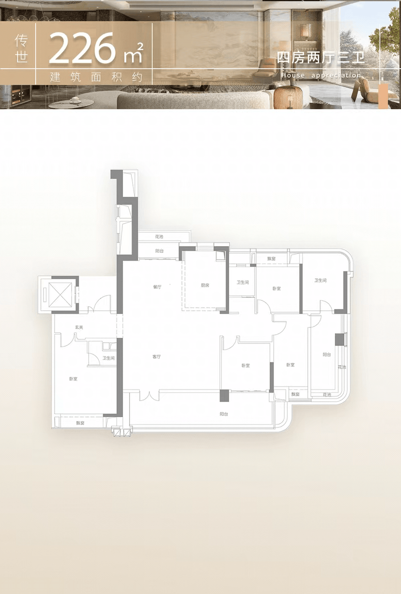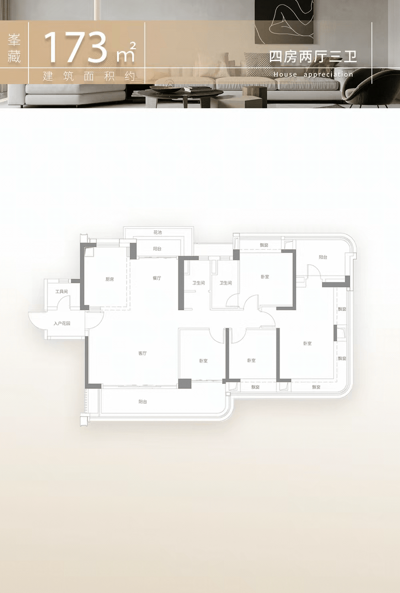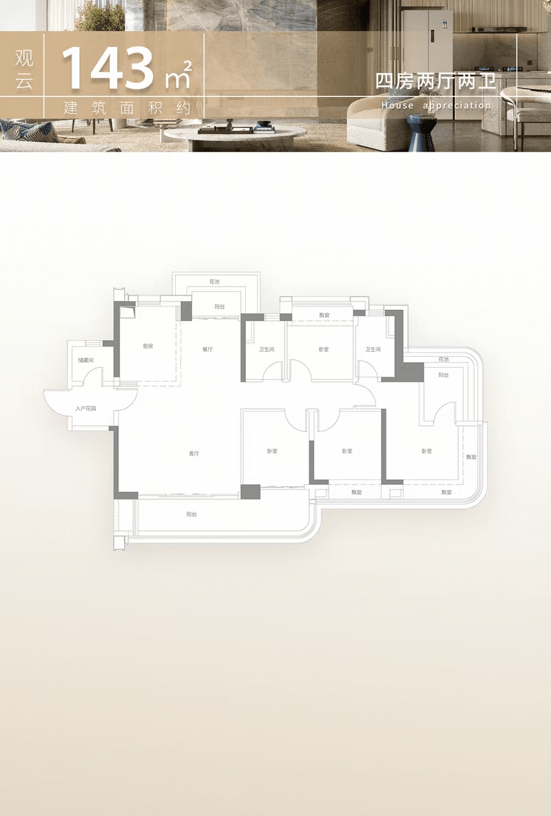 168㎡五房两厅三卫:高端改善户型,南北双阳台,主卧套房带步入式衣帽间与独立卫浴,适合多子女家庭;
