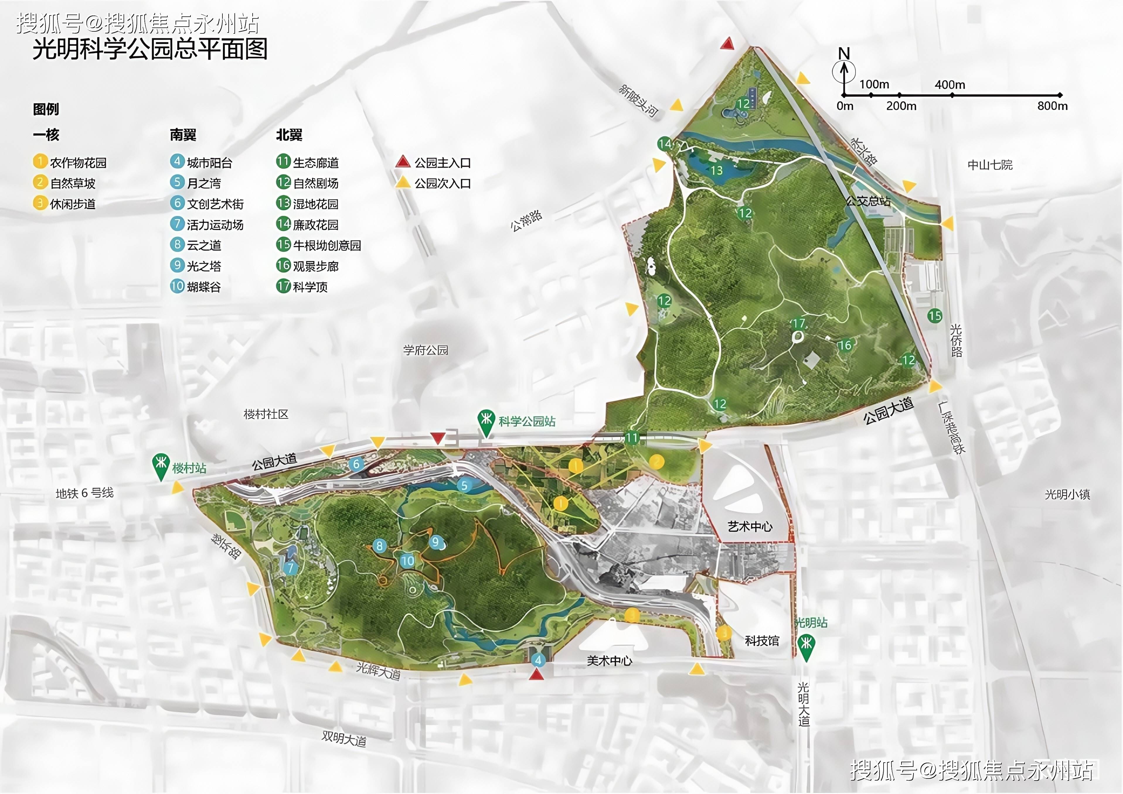 包括科学公园横跨的三座地铁站(楼村站、科学公园站、光明站),以及环伺的深圳科技馆新馆(建设中)、深圳国际美术馆(暂定名,建设中)、艺术中心(建设中)、光明书城、体育馆、科学岛等“五馆一岛”城市级文化地标。
