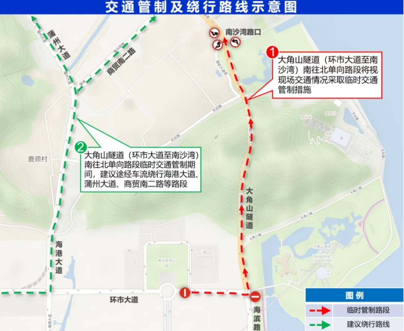 环市大道南(研究院路口至海滨路)西往东方向、大角山隧道(环市大道至南沙湾)南往北方向。公安交管部门将根据车流变化情况,动态扩大或缩小管制的路段、时段,非参观灯会车辆,