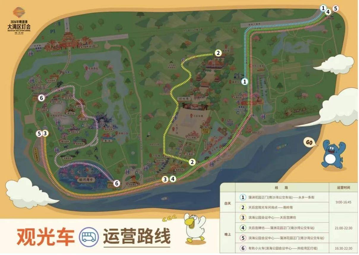 线路⑥:滨海公园会议中心-共绘湾区灯组,16:30-22:30,30元/人/次。